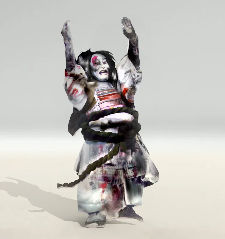 The woman fell in love with a handsome young man. The man was an itinerant priest undergoing rigorous training and abandoned her in fear of violating his religious commandments. The deserted woman reproached him for his betrayal, and transformed herself into a snake, pursued him to the temple, and scorched him to death by melting the bell, in which he was hiding, with the flame of jealousy. One day when a new bell was installed at the temple, a beautiful woman appeared at the temple. In the garden whee cherry blossoms bloomed all over, she danced beautifully, went close to the bell, and disappeared into the bell. When the bell was lifted, a horrendous snake came out again. The vindictive grudge of the woman against the bell that once gave refuge to her lover had lived on. The beautiful dance of kyoganoko musumedokodi was born from this fearful legend. However , “Musumedojoji is not a story of vindictiveness and jealousy of a woman but it’s a story of the beauty of womans love. For about two centuries since its first performance in 1752, people have grafted onto the dance of their fantasies about women. That is why the woman at one time takes the image of a gay entertainer, at the other a lovelorn innocent girl, a refined courtesan, and a jealous woman. Yet they have something in common; they all depict women in love, as well as the pleasure, frailty, eroticism, jealousy pain, and solitary despair of love. Truly, while watching Tamasaburo’s “Musumedojoji,” I saw eroticism of love from the entertainer who closed her eyes at the passage way, and heard a buoyant song of love from the girl who looked into the mirror. Thus for hundreds of years “Musumedojoji has been loved among Japanese. Love is manifold of blossomes, countless fantasies of love have made up a woman